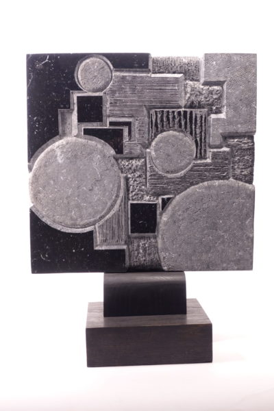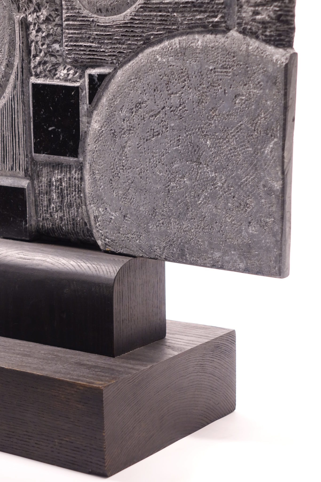 Large Chiseled Stone Sculpture on Wood Base – 2381