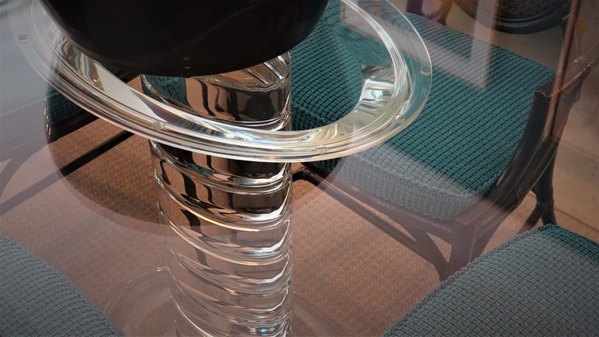 Magnificent Oval Lucite Pedestal Table w/ Glass Top (signed) – 10359