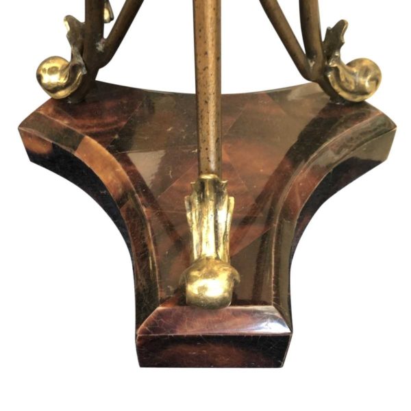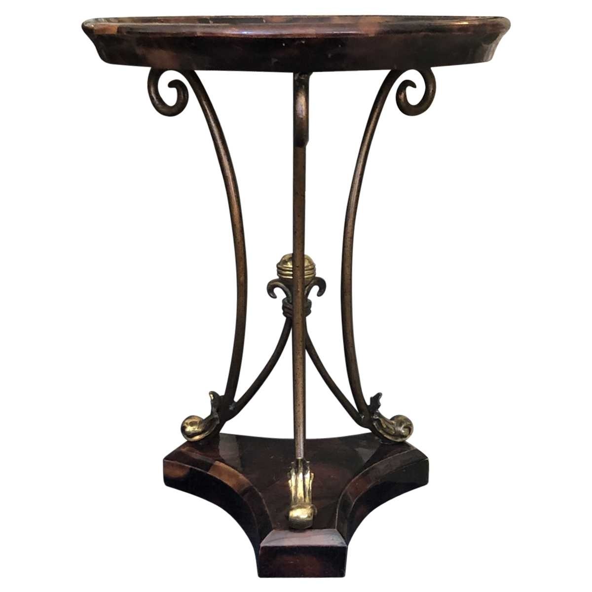 - Copper-finish painted metal pedestal support with brass caps.