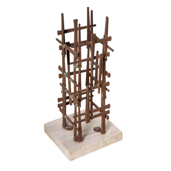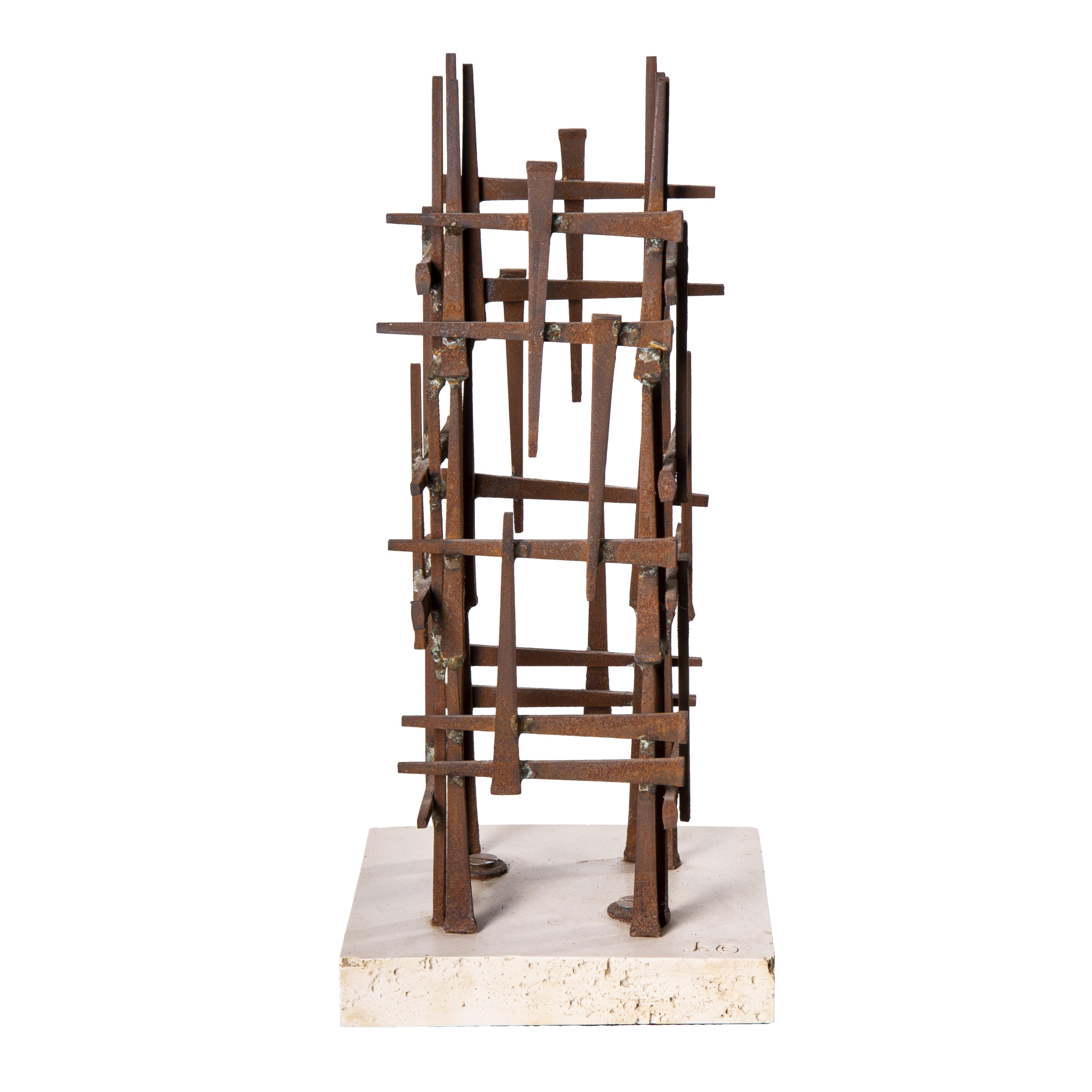 Mid-Century Modern Iron Sculpture Stone base