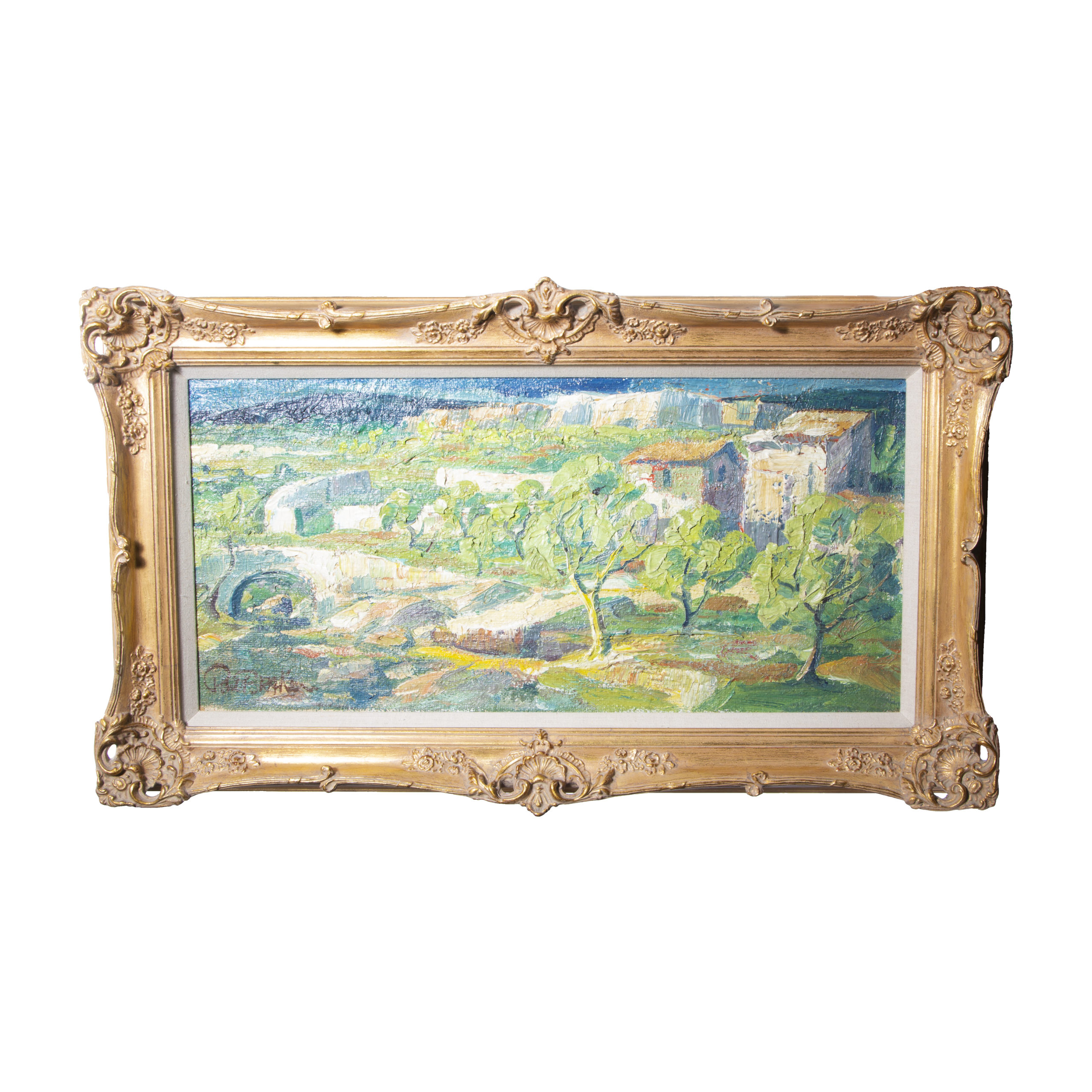 Vintage Green Landscape Oil Painting